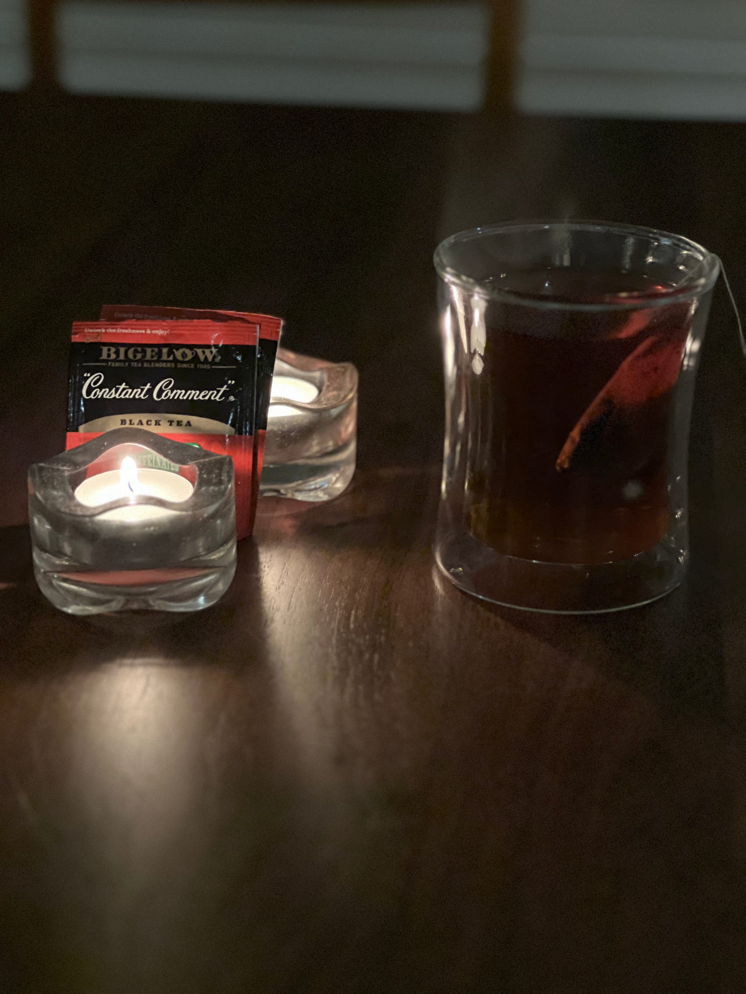 For as long as I can remember mine’s been Constant Comment, which is black tea with orange and “sweet spices” that are a family secret and absolutely not probably cinnamon, ginger, cloves, cardamon, and orange peel. Because it’s a family secret and therefore unattainable.