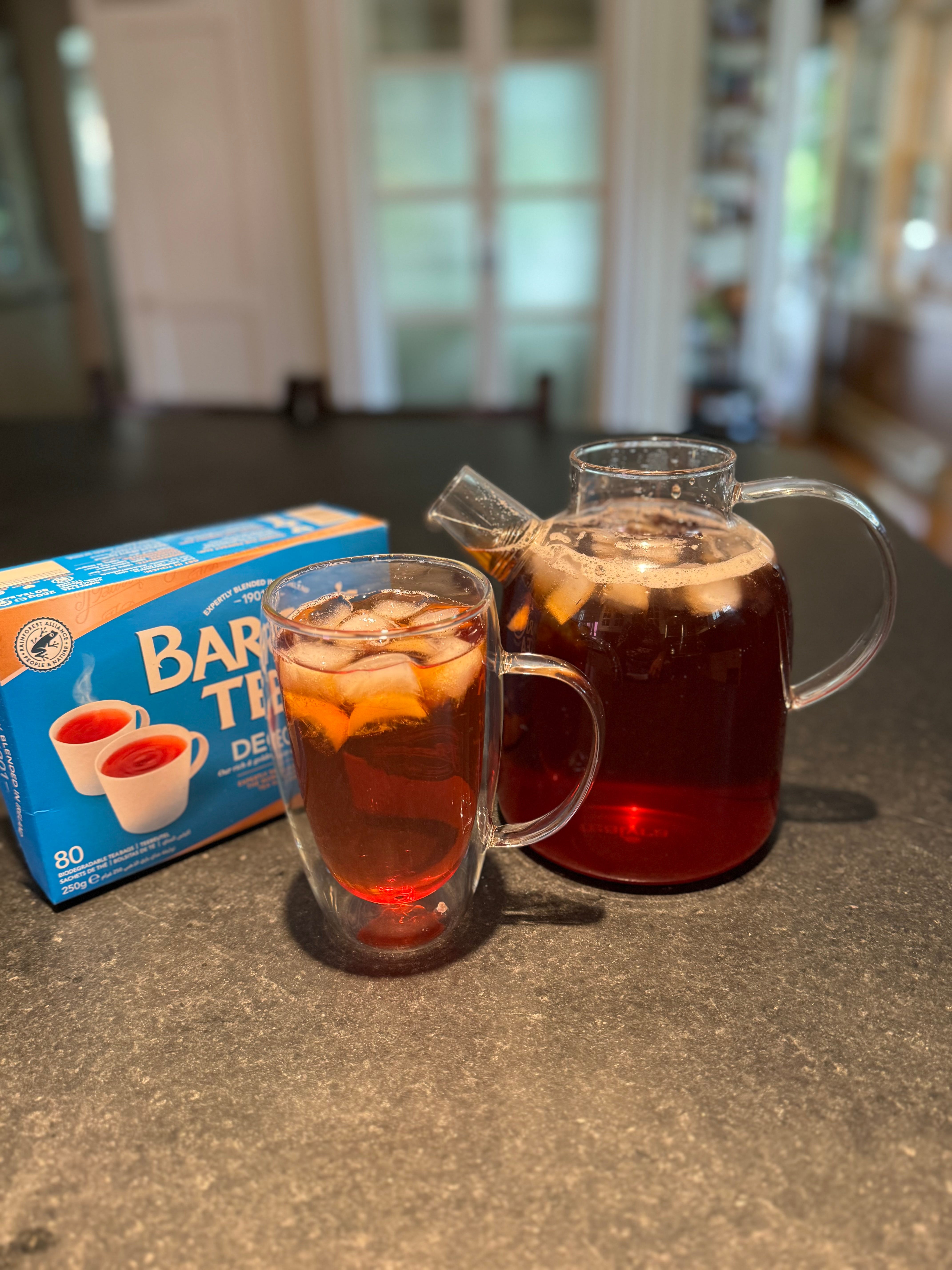 It is finally reliably iced tea weather, and I’m here for it. I’m also up all night if I drink too much of it, so I ordered the Barry’s tea in decaf, and am keeping a pitcher of it in the fridge.
