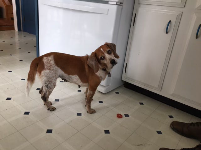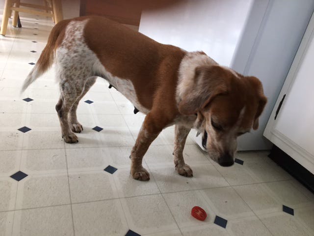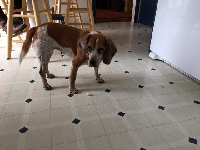 You see, Beagle, while you'll beg, sneak, brazenly steal, and problem-solve constantly in search of your next snack, there are some things you just won't eat, vegetables, fruit, and egg whites being the most curious of them. I can only assume it's the heritage of your unfortunate upbringing that you'd trip Mother Theresa for a Tater Tot, but leave a hard boiled egg white untouched during famine.